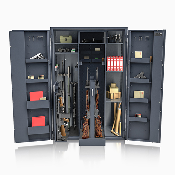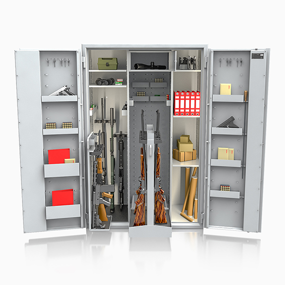 Duża dwudrzwiowa szafa na broń z oświetleniem LED oraz z zamykaną wewnętrzną skrytką, wyposażona w 27 przestawnych uchwytów piankowych. W tylnej części znajdują się uchwyty magnetyczne 55 mm: 2×3 uchwyty i 1×4 uchwyty. Na ruchomej ściance na szynie znajduje się 5 uchwytów 55 mm, a na wysuwanym cargo są dwie szyny po 6 uchwytów 65 mm. W szafie jest także 5 przestawnych półek, po 4 pojemniki na każdych drzwiach, 9 pojemników do zawieszania a także 14 haczyków na drzwiach (po 7 na każdych) na klucze i akcesoria.