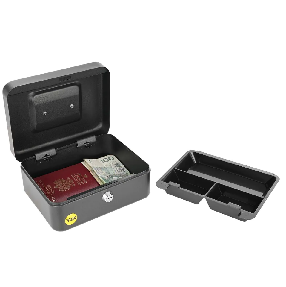 Kasetka na pieniądze Yale YCB/090/BB2 to solidne i wygodne rozwiązanie do bezpiecznego przechowywania gotówki w domu lub pracy. Wytrzymała konstrukcja, zamek na klucz oraz wyjmowana tacka zapewniają ochronę i łatwą organizację. Dzięki poręcznemu uchwytowi doskonale sprawdzi się również podczas transportu pieniędzy.