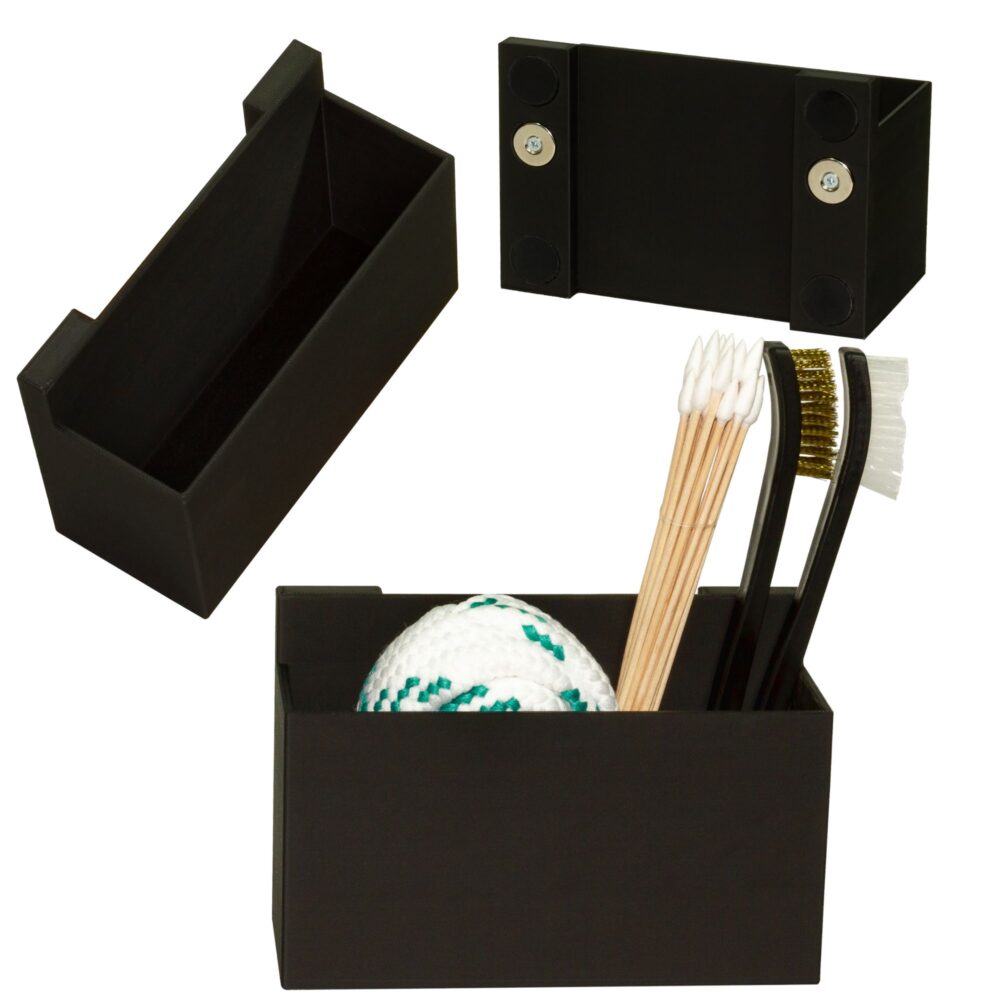 Pojemnik na akcesoria to praktyczne rozwiązanie, które pozwala maksymalnie wykorzystać przestrzeń w szafie na broń czy sejfie. Został zaprojektowany z myślą o osobach, które cenią porządek, szybki dostęp do wyposażenia oraz ergonomiczne zagospodarowanie wnętrza sejfu.